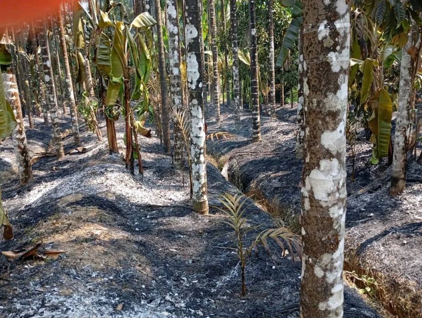 ಆಕಸ್ಮಿಕ ಅಗ್ನಿ ಅವಘಡಕ್ಕೆ 300 ಅಡಿಕೆ ಮರಗಳು ಭಸ್ಮ; ರೈತನ ದಶಕಗಳ ಶ್ರಮ ಸುಟ್ಟು ಕರಕಲು
