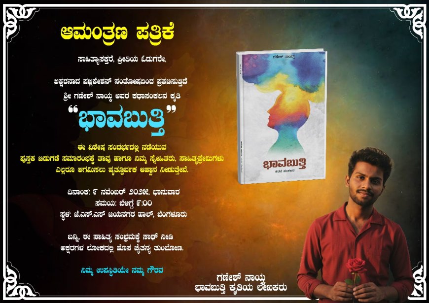 ಉತ್ತರ ಕನ್ನಡದ ಇಬ್ಬರು ಯುವ ಕವಿಗಳು ಹಾಗೂ ಆಪ್ತ ನ್ಯೂಸ್ ಬರಹಗಾರರಾದ ವಿನಯ್ ನಾಯ್ಕ್ ಮತ್ತು ಗಣೇಶ್ ನಾಯ್ಕ್ ಅವರುಗಳ ಪುಸ್ತಕ ಬಿಡುಗಡೆ ಕಾರ್ಯಕ್ರಮವು ೯ ನವೆಂಬರ್ ೨೦೨೫, ಭಾನುವಾರ ಬೆಳಿಗ್ಗೆ ೯:೦೦ ಗಂಟೆಯಿಂದ ಬೆಂಗಳೂರಿನ ಜೆ.ಎಸ್.ಎಸ್ ಜಯನಗರ ಹಾಲ್ ನಲ್ಲಿ ನಡೆಯಲಿದೆ.