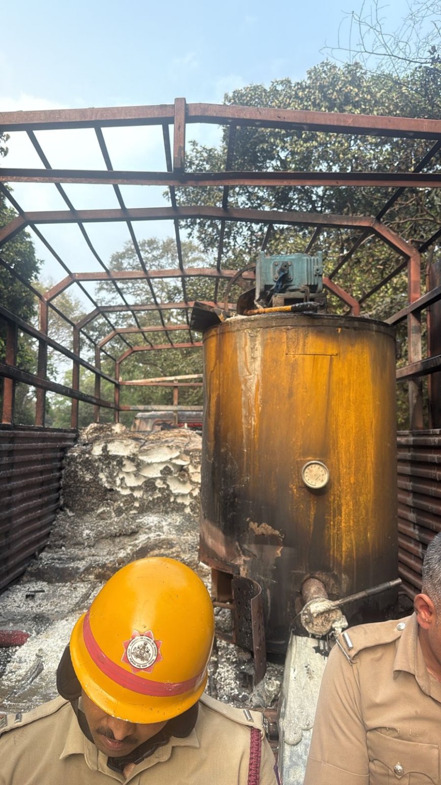 ಹೆದ್ದಾರಿಗೆ ಬಾರ್ಡರ್ ಪೇಂಟ್ ಮಾಡುವಾಗ ಬಾಯ್ಲ್ ರ ಹೀಟ್ ಆಗಿ ಬೆಂಕಿ ತಗುಲಿ ಲಾರಿಯಲ್ಲಿ ಇಟ್ಟಿದ್ದ ಭಾರತ್ ಗ್ಯಾಸ್ ಸಿಲಿಂಡರ್ ಬ್ಲಾಸ್ಟ್ ಆಗಿ ಲಾರಿ ಸುಟ್ಟು ಹೋಗಿದೆ. ಆದರೆ ಜೀವಹಾನಿ ಸಂಭವಿಸಿಲ್ಲ.